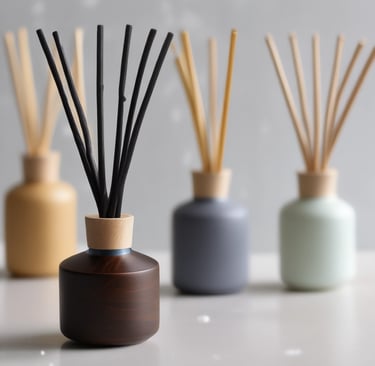 Difusores de varillas: 10% a 30% de esencia en base portadora.